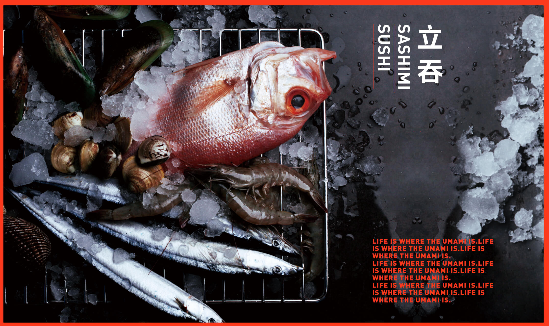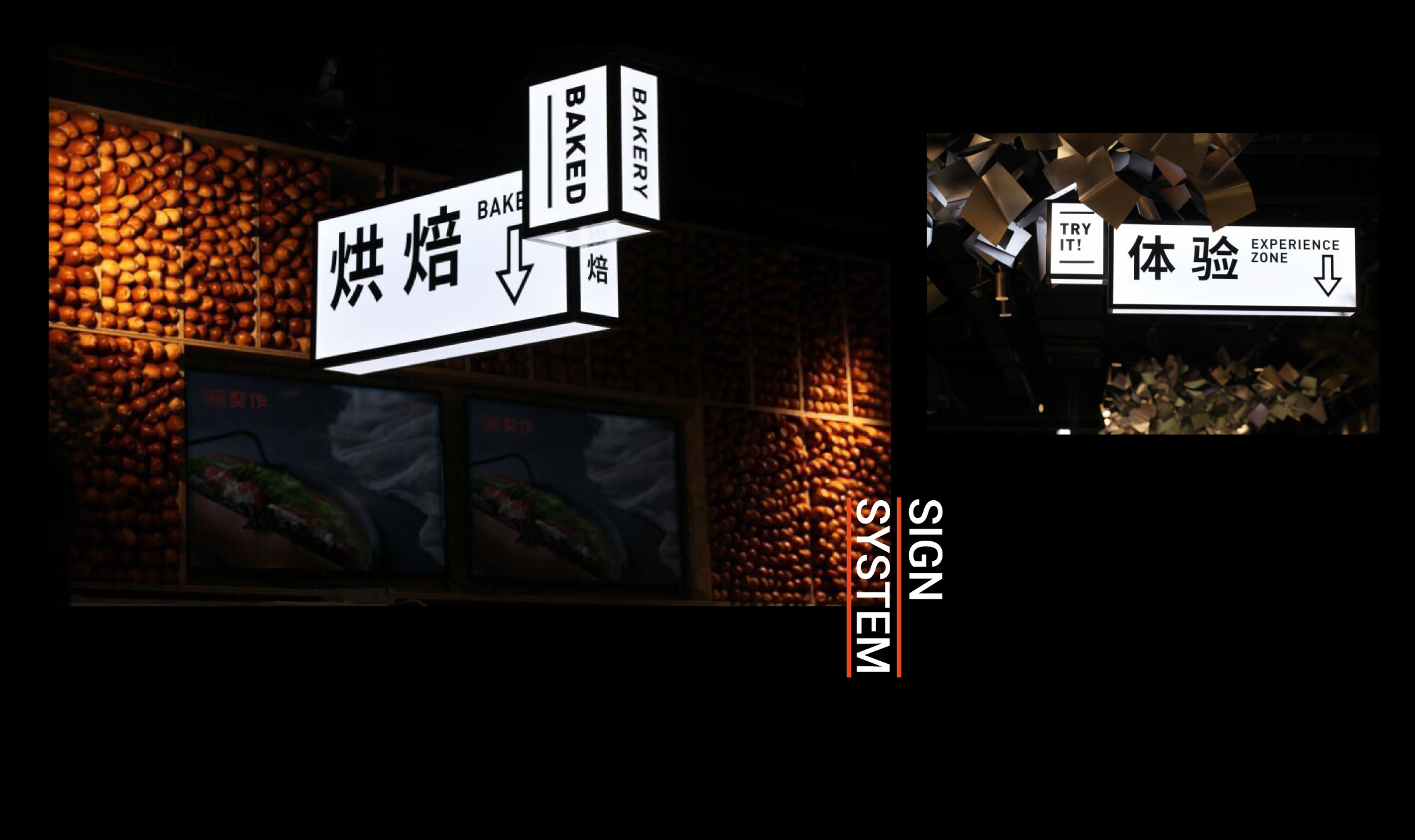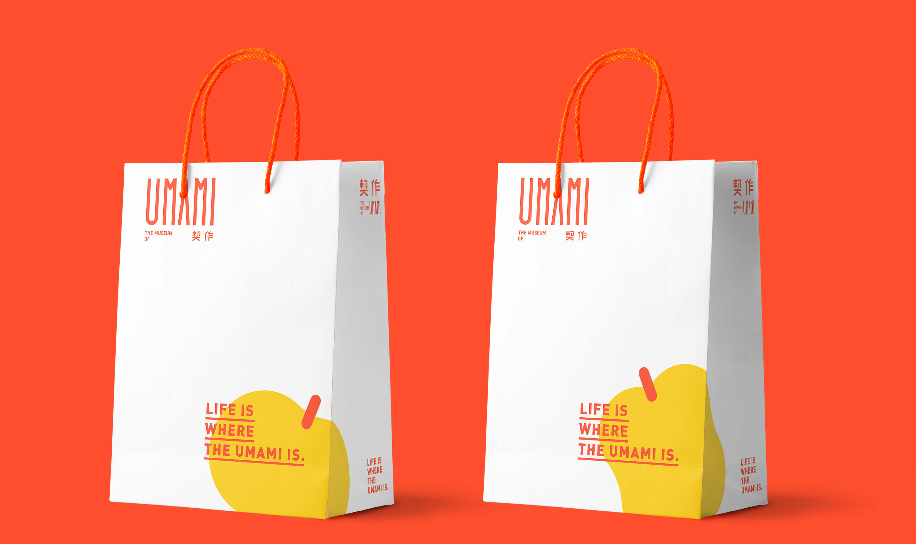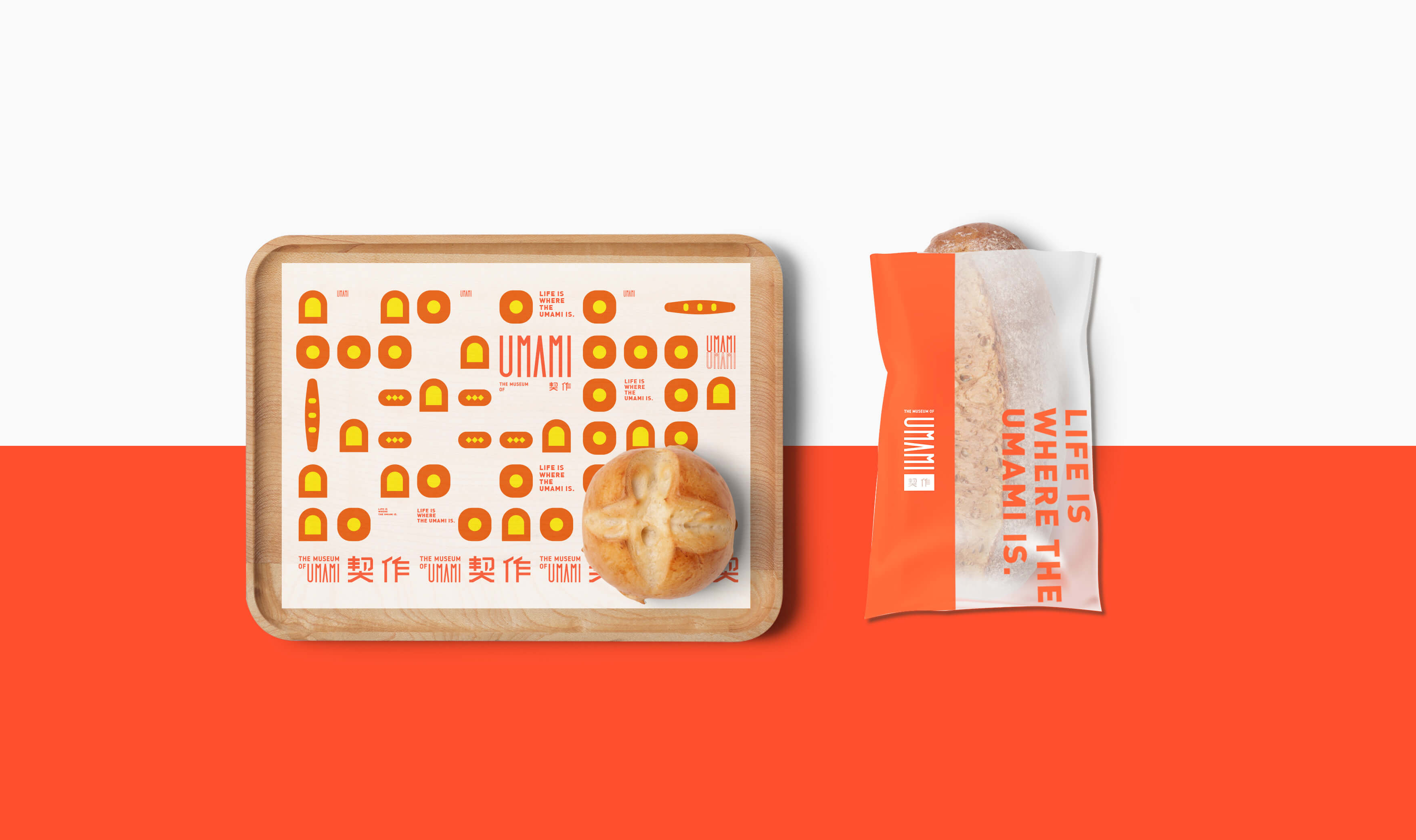 品牌標準字 透過如同現代美術館的識別概念為主軸 強調"鮮味“的顏色計畫 一系列輔助圖形讓消費者快速了解商品服務區塊 一系列海報宣傳系統強調"Life is where the umami is" 生活就在契作的概念 商場內燈箱系統