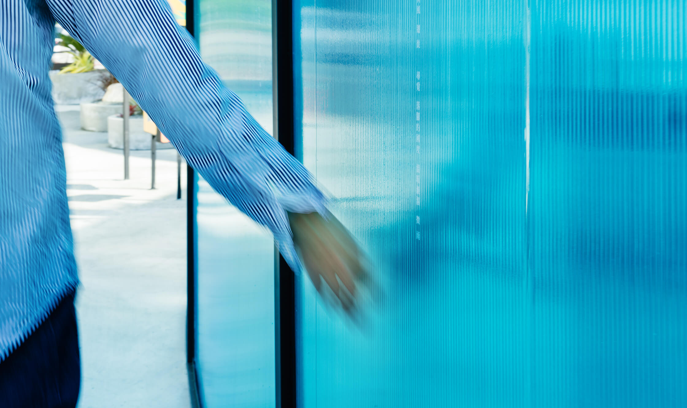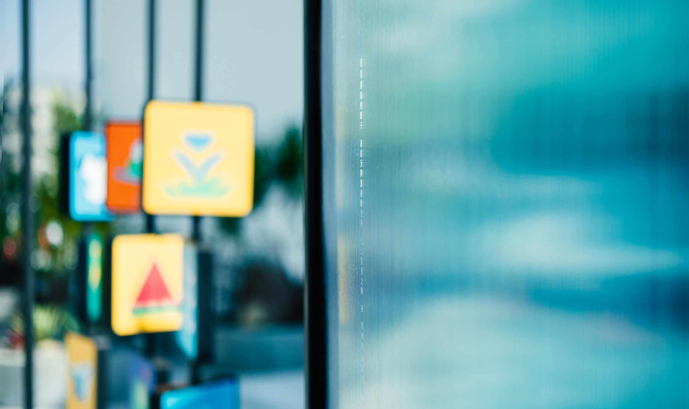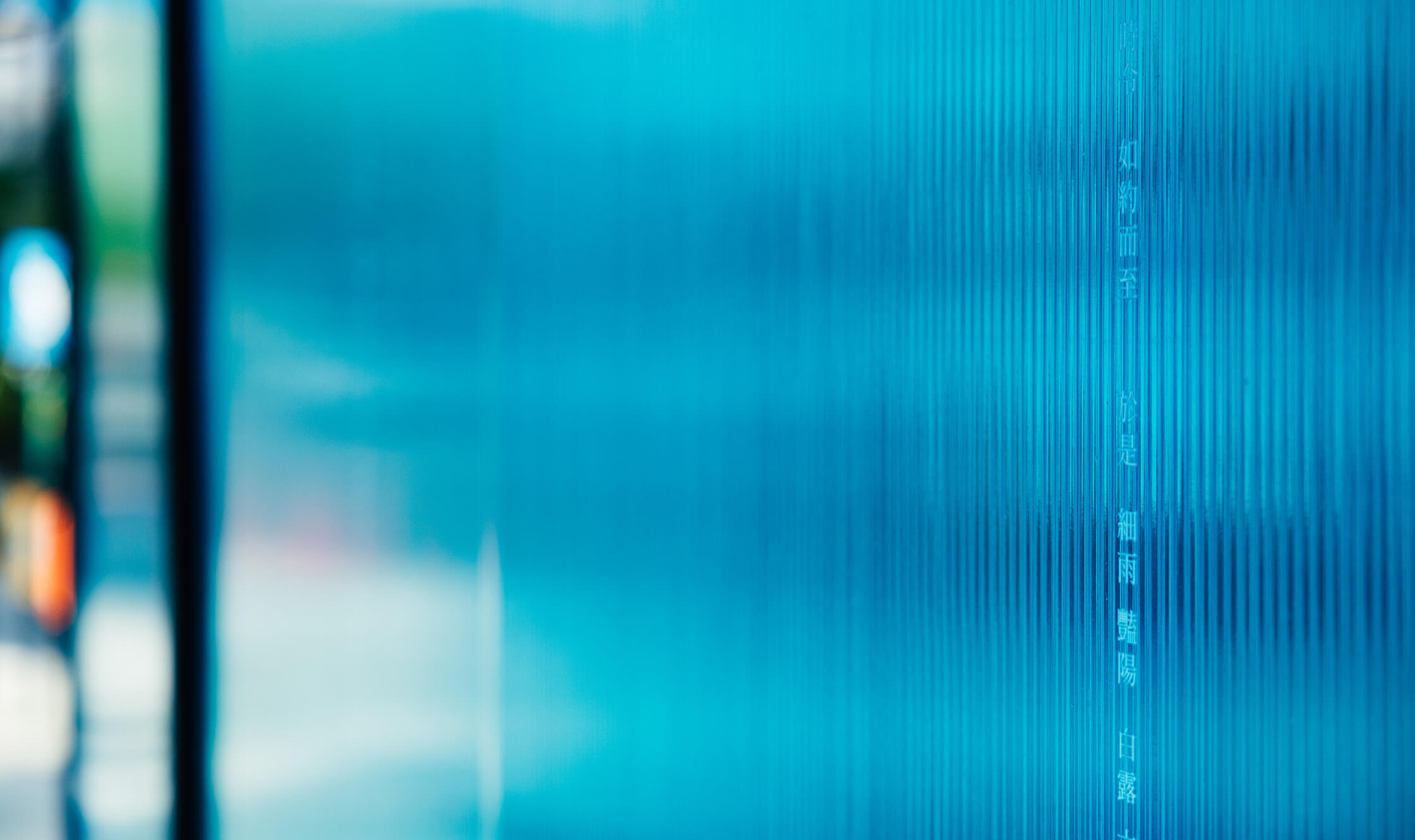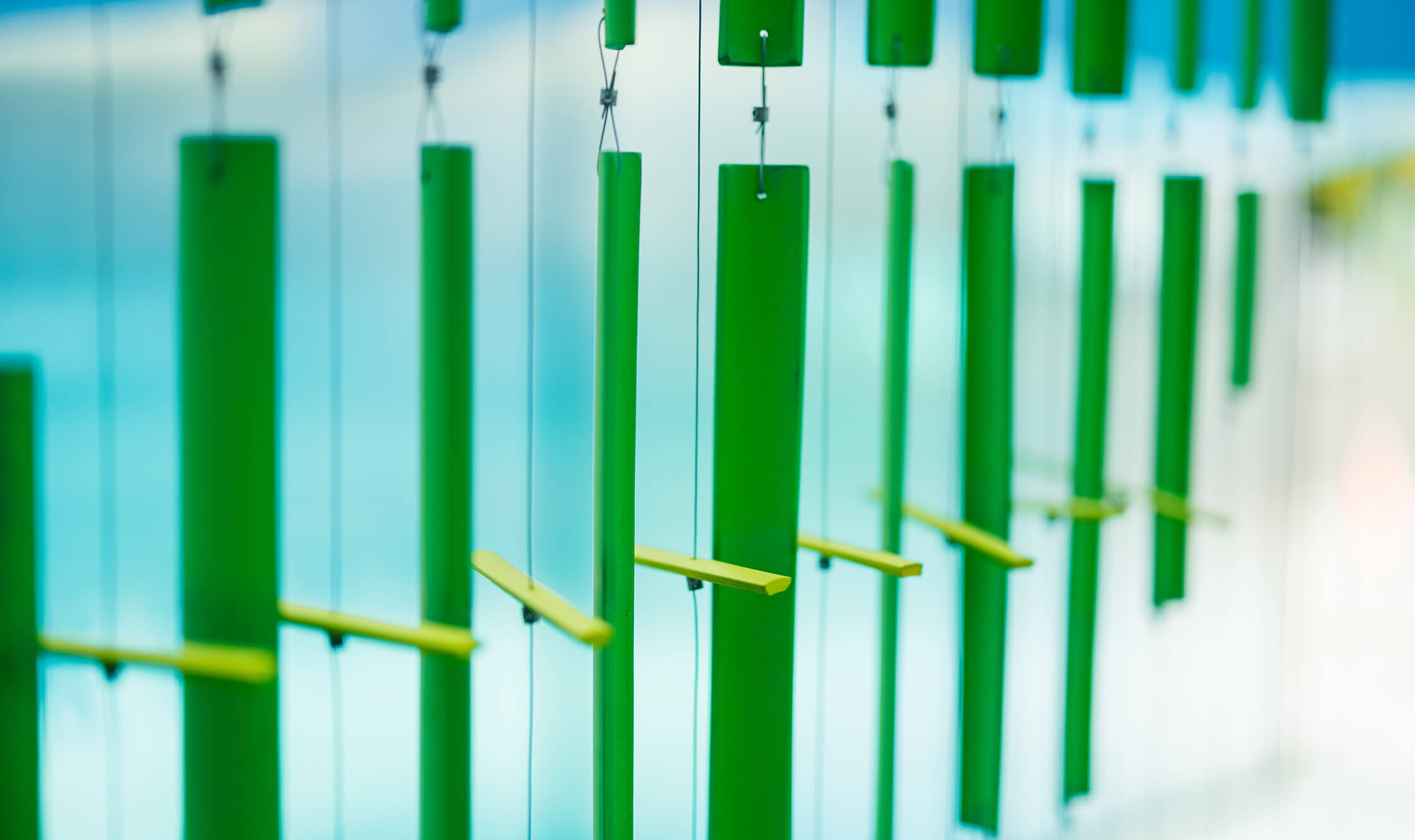 裝置的第一個部份為聽覺區域,意圖捕捉涼風吹過帶來的清脆木聲,感受風的力道及風向。第二區塊為視覺區域,整體帶有冰涼感的藍色隧道,人步行其中也可閱讀兩旁關於風的詩句文字。最後一部分的觸覺區塊,可讓親子同樂,一同翻轉牌上的圖案,想像盛夏時刻的生活元素與點點滴滴。展區中讓人感受有別都市叢林的綠意植物,也一起同步設定位置與形式。讓精巧的展場與周圍帶不同的氛圍。