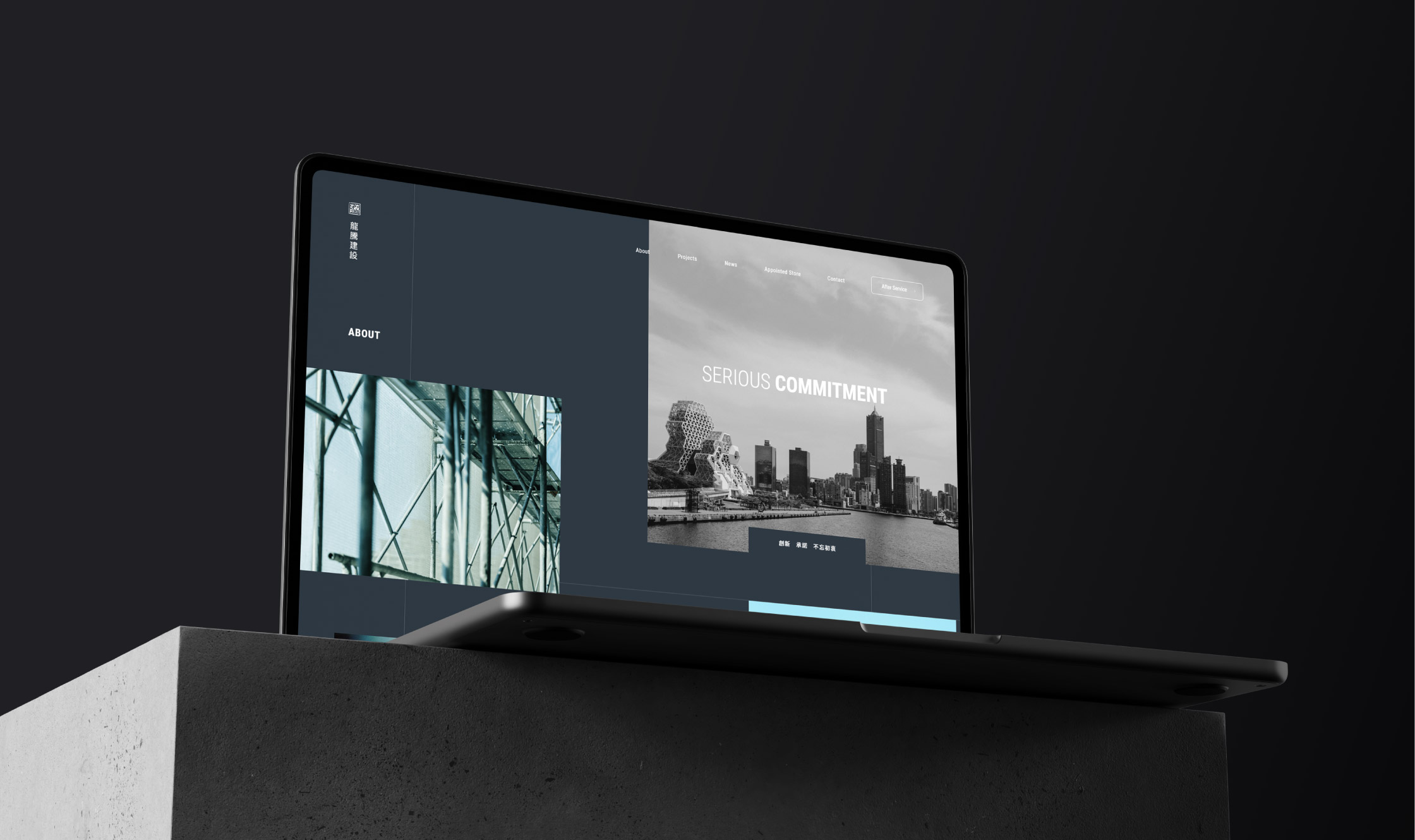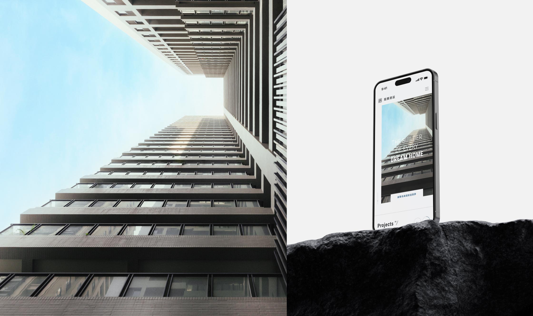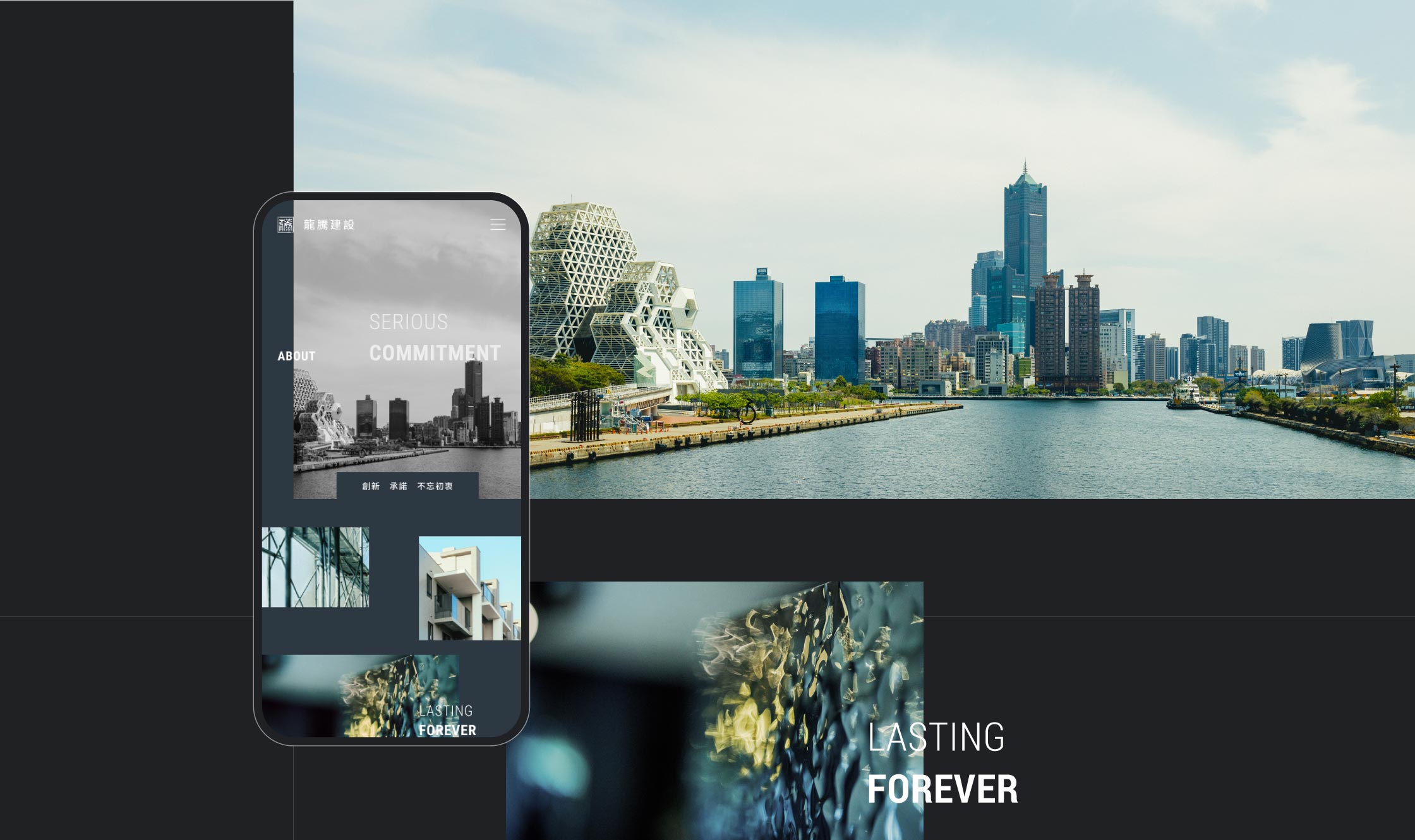 龍騰建設為高雄代表性之建設公司,透過建案規劃定義了城市的面貌。此次設計團隊將舊有網頁不方便更新及閱覽方式更動,重新建立了網站資料結構。也透過圖塊與線條切割的方式,帶出當代建築之氛圍。讓閱讀網站的讀者,像是瀏覽一本精密的建築作品集,呈現出舒緩且簡潔的節奏感。