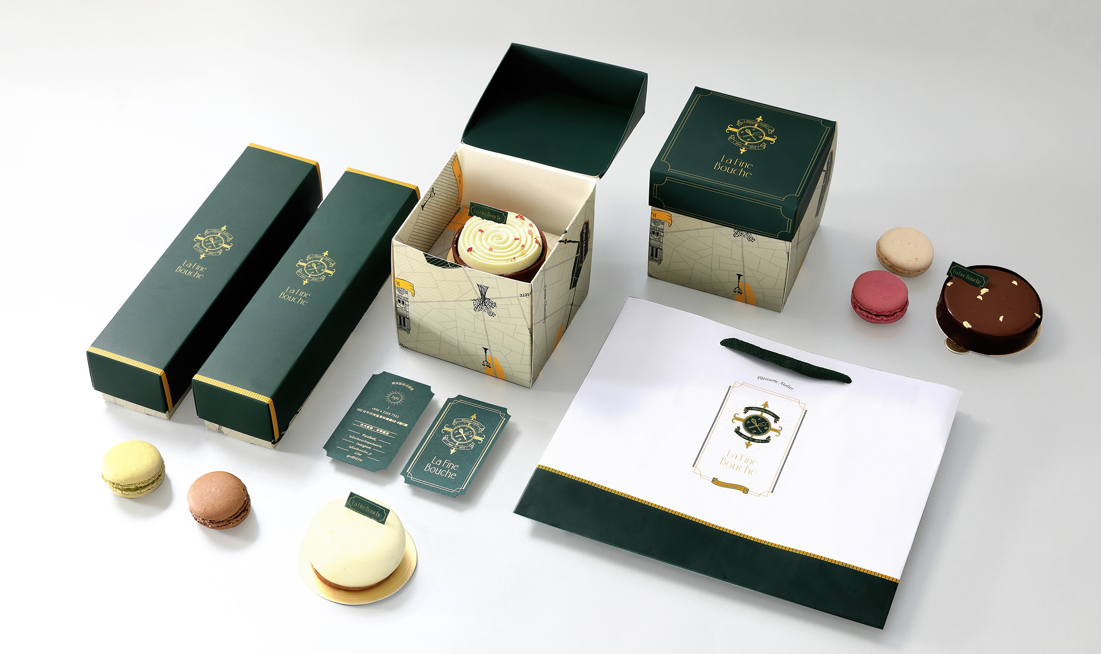 La Fine Bouche 樂氛區是此新品牌的命名,以法文與中文諧音與字義都各自有特殊涵意 的巧妙命名;傳達出正統法式甜點堅持與歡愉氣氛,標誌符號的概念採用歐洲街道常見標示, 再同時結合巴黎地標交通路線圖,更讓市場認識這個來自法式語彙甜點的新亮點。
